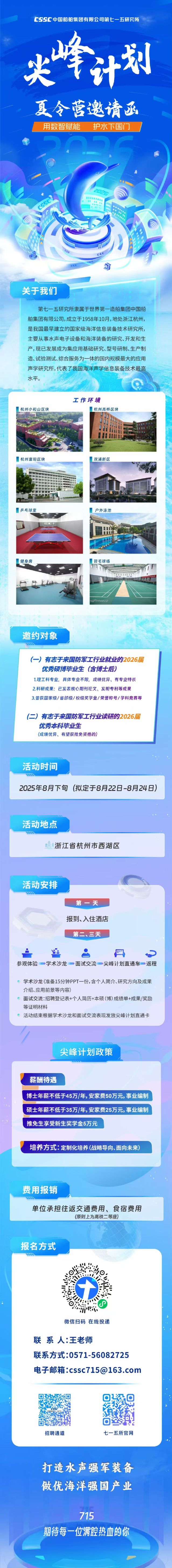 招聘 | CSSC中国船舶集团有限公司第七一五研究所尖峰计划夏令营邀请函