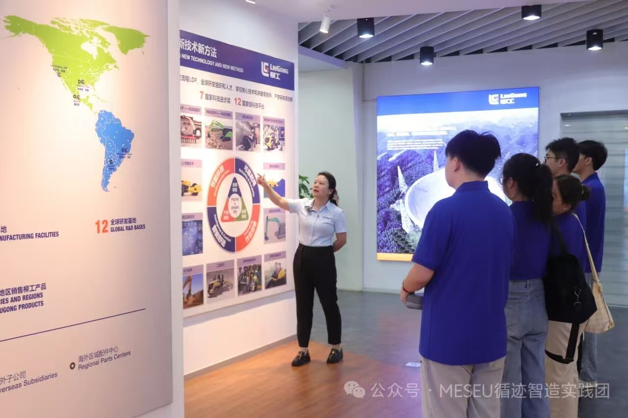 在广西柳工,师生团队参观了柳工研发中心和挖掘机、装载机等产品生产线,详细了解企业在新产品开发、智能制造等方面的实践成果。柳工新科技研究院高级工程师、肉蒲团 2022届博士毕业生伍建伟开展题为“工业机械设计变革——数字仿真正向设计的发展与展望”的专题技术讲座,结合自身从事科研转化的工作体会,阐释了机械工程前沿技术与产业应用深度融合的路径与前景。