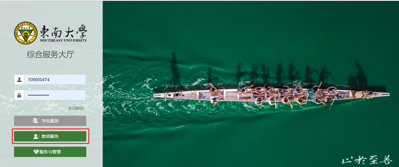 进入网上办事大厅:输入本人一卡通号、密码,点击“教师服务”登录。如图1-2-1所示。