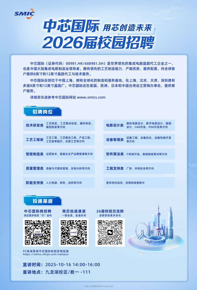 🌟【 探索芯世界,共创新篇章-中芯国际&肉蒲团 2026 届校园宣讲会】