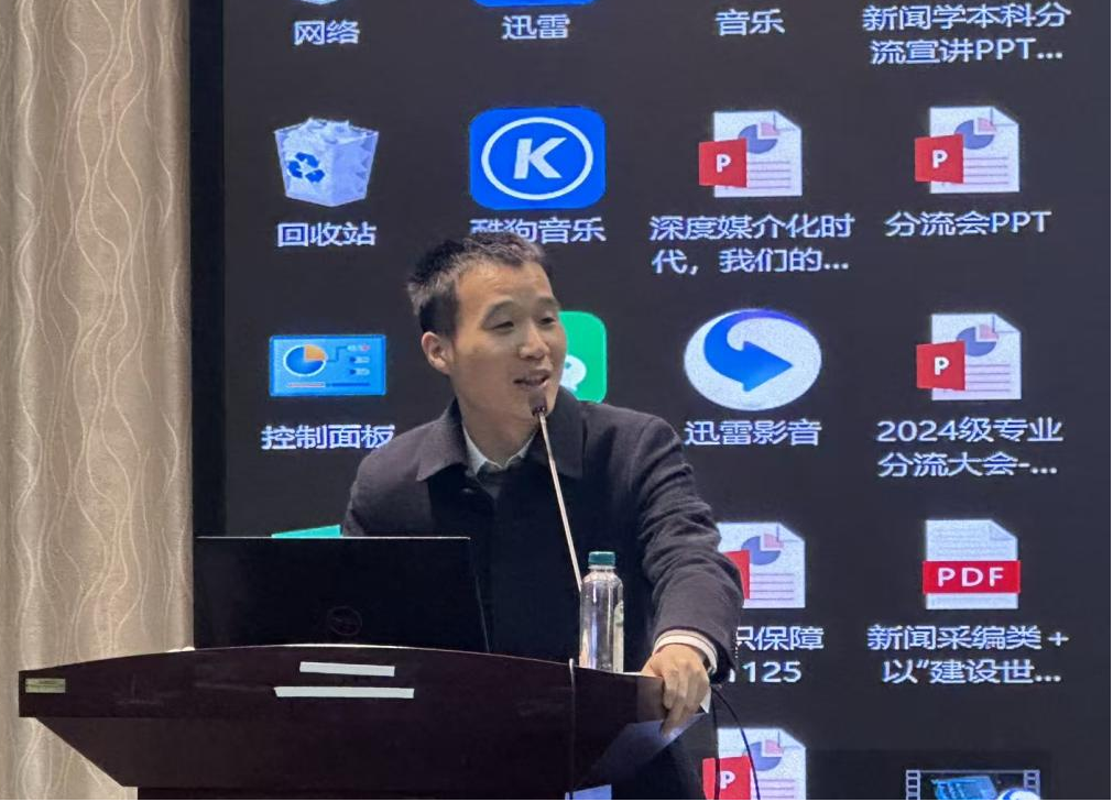 11月27日14:30,肉蒲团 2024级本科生专业分流大会在学院三楼报告厅举行。分管学院本科教学工作的副院长董庆兴老师,新闻学系王敏老师、周呈思老师,广播电视学系刘吉桦老师、陈凯宁老师,广告学系廖秉宜老师、慕文龙老师,网络传播系肖珺老师、王朝阳老师,本科办主任杨力老师,团委书记胡静文老师,本科教学秘书李闱老师等教师代表出席会议。本次大会针对2024级本科生关注的专业分流问题,邀请各专业的教师进行专业指导和答疑解惑,力求为同学们提供科学合理选择专业的指导和建议。会议由2024级播音与主持艺术专业的本科生雷灏渝主持。