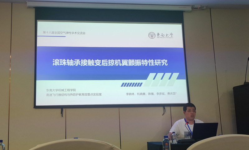 李轶林同学作了题为《滚珠轴承接触变后掠机翼颤振特性研究》的报告。报告内容受到同行专家的广泛关注与高度认可,会议期间两位同学与国内气动弹性领域的专家学者进行了广泛的交流与讨论,对当前及未来气动弹性研究的发展方向和应用前景有了更开阔的视野。