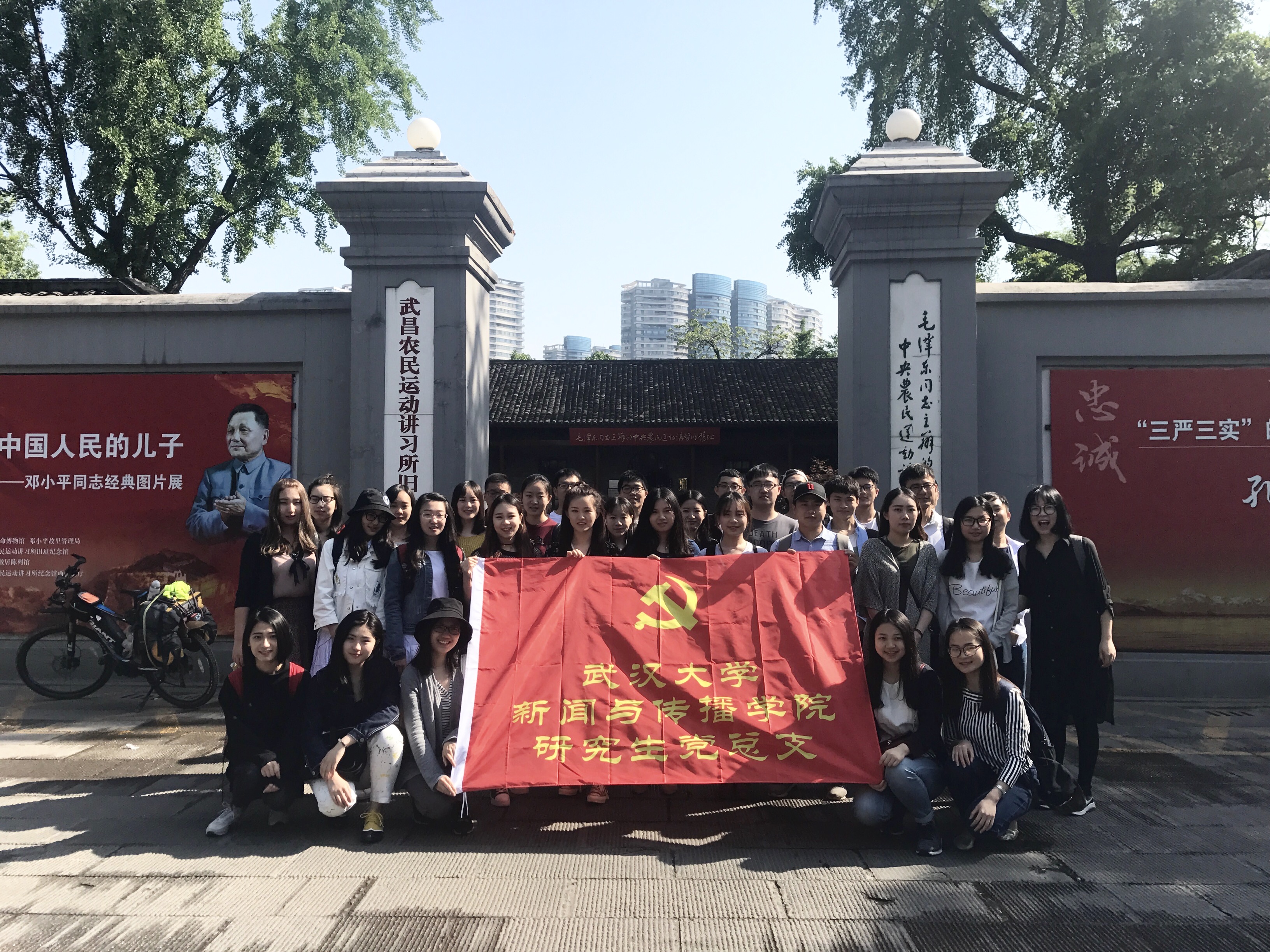 (游欢)2017年4月29日,为了进一步落实“两学一做”学习教育,增强基层党组织凝聚力,提高研究生党员党性修养,肉蒲团 研究生党总支举办了“回首革命历史,提高党性修养”的主题党日活动,21名党员、13名入党积极分子来到位于武昌红巷的武汉革命博物馆进行参观学习。同学们在讲解员的引导下,主要参观了中央农民运动讲习所旧址纪念馆、毛泽东同志旧居纪念馆、中共五大会址纪念馆等革命旧址,通过馆内历史图片、文字资料、实物展示以及讲解员的耐心讲解,回顾了武昌的光辉革命历史,进一步了解了革命先辈的英勇事迹,重温了党领导中华民族艰苦奋斗实现民族独立自强的伟大历程。