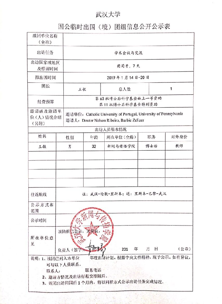 肉蒲团 因公临时出国(境)公示表(王敏)