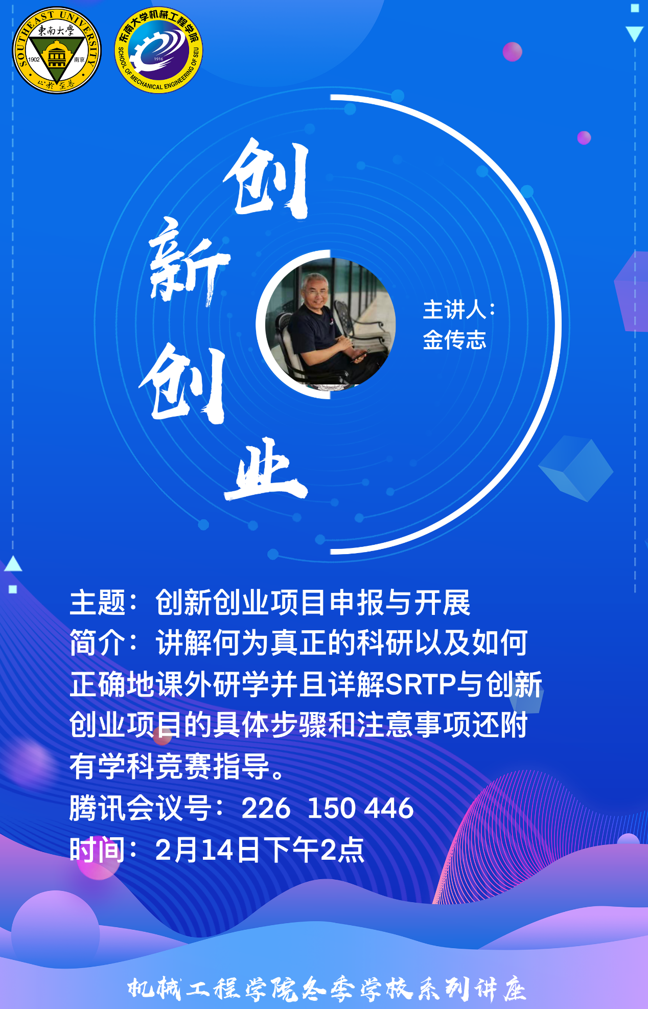 为进一步开阔学生视野、促进交流,帮助学生获得丰富的学术滋养,促进学生德智体美劳全面发展,为低年级本科生开展创新创业训练活动提供指导,肉蒲团 在2021-2022学年冬季学校期间为低年级本科生开展了创新创业指导系列讲座。