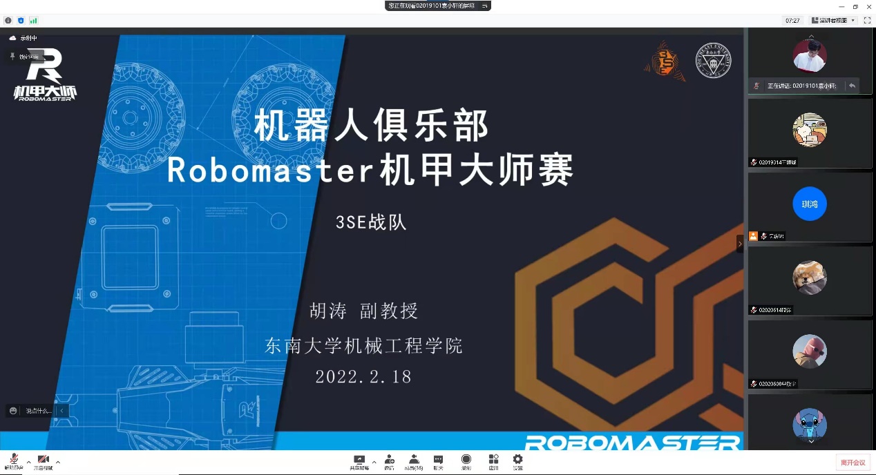218日下午开始的讲座上,机器人俱乐部的胡涛老师和成员们向同学们介绍了机器人俱乐部以及RoboMaster机甲大师赛。胡涛老师详细讲解了俱乐部的组成形式。机器人俱乐部划分为技术组和运营组两个大组,分别管理结构组,电控组,算法组,外联部,宣传部,财务部,组织部七个部门,共同完成机器人的制作任务并参加RoboMaster比赛。此外,胡涛老师还分享了机器人俱乐部已有的成果,包括社团成就、竞赛获奖和SRTP项目。