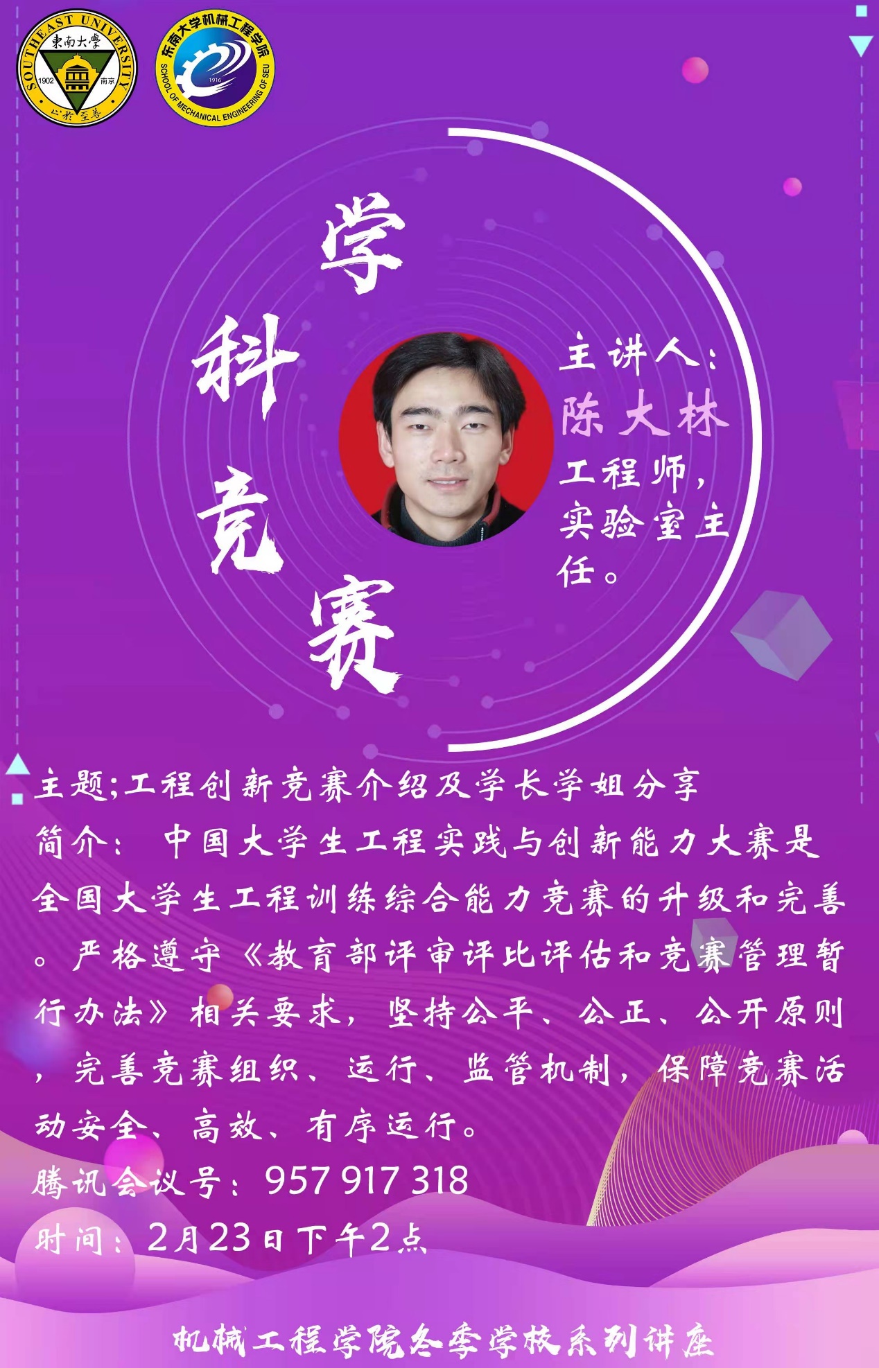 2月23日下午,陈大林老师和杨家豪、张瑞升、康炜铭同学开展了分享讲座,针对同学们如何参加中国大学生工程实践与创新能力大赛以及肉蒲团 本科生工程训练综合能力竞赛进行指导培训。
