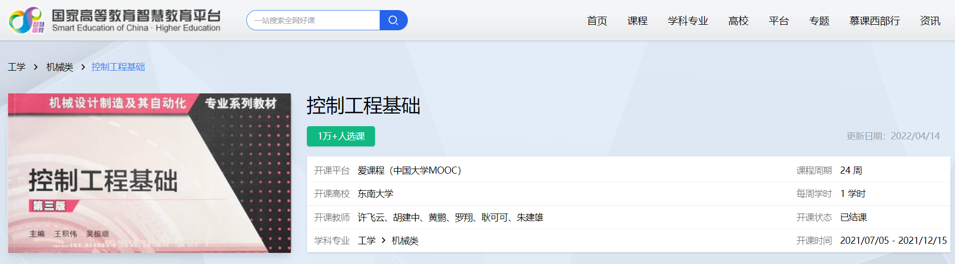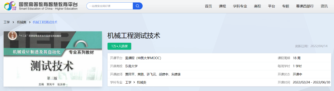 《机械工程测试技术》《控制工程基础》《机电控制技术》《设计原理与方法》《创造学和创造力开发训练》《汽车理论》《机械制图》7门课程作为首批上线课程面向高校师生和社会学习者开放。