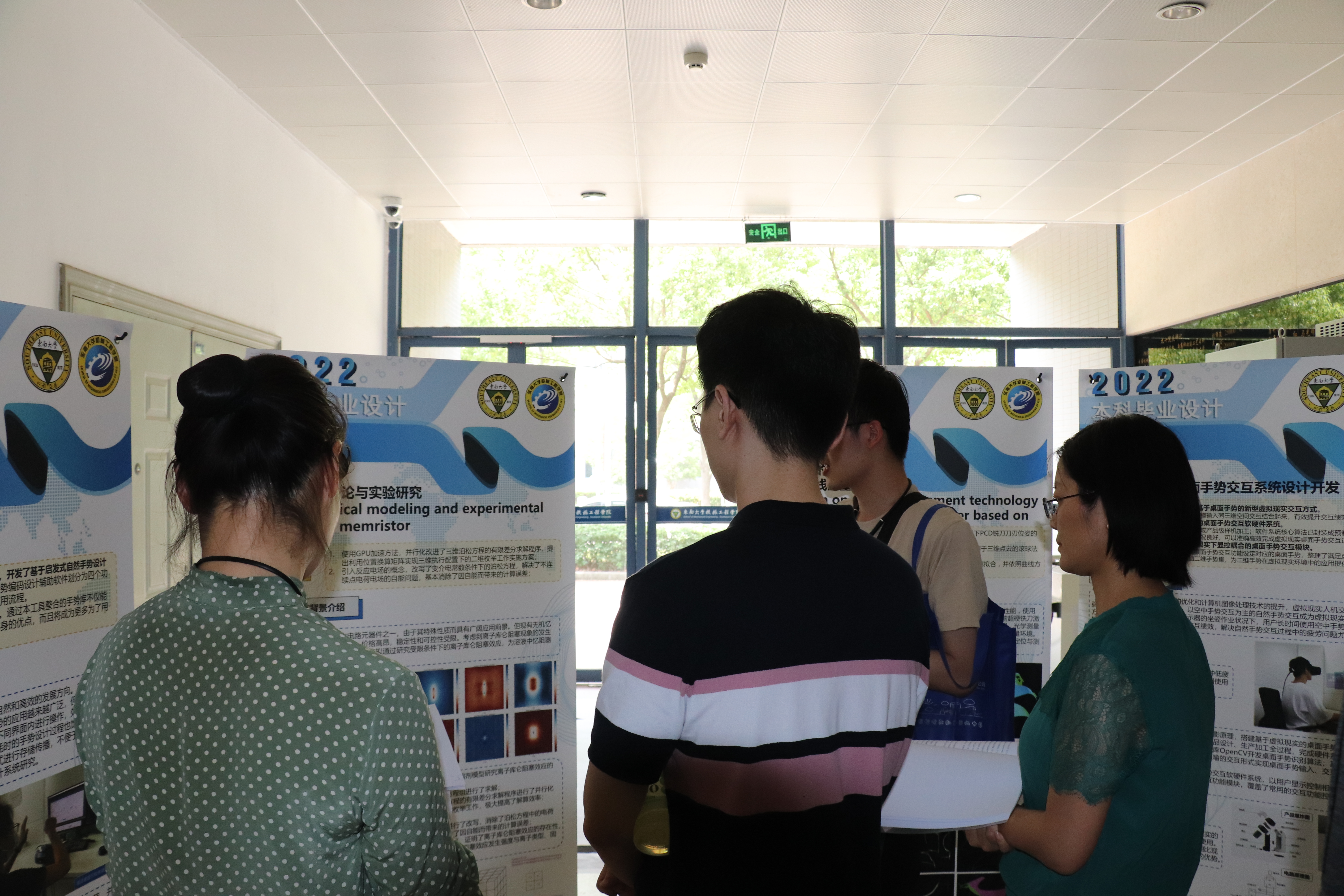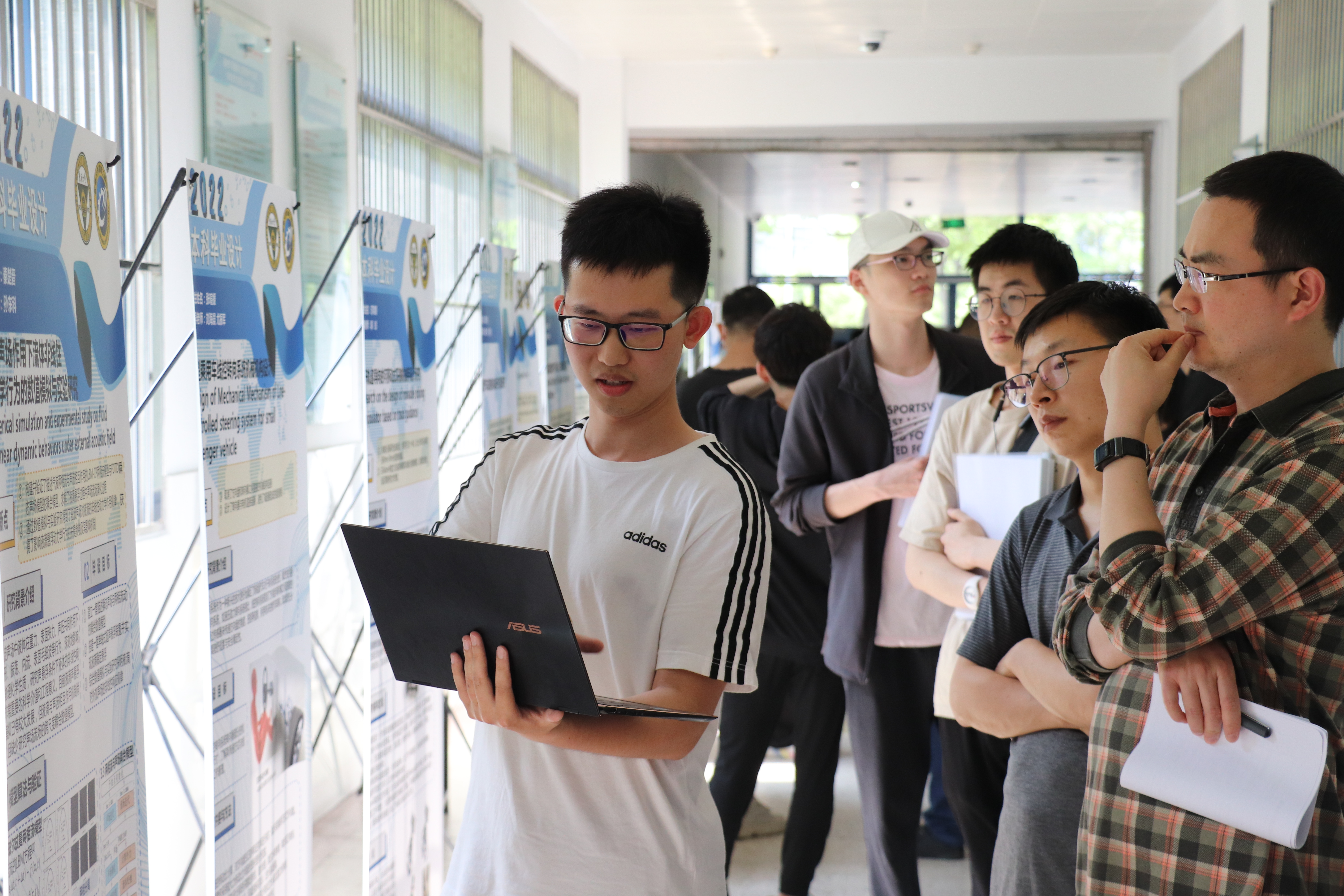 三组评审老师轮流到各个学生作品展板前,与学生交流毕业设计项目,详细了解其研究背景、内容方法、结论成果以及主要创新点,对参展项目进行了客观评价,并针对研究不足之处提出了建议与期望。最终通过统计评审老师为项目的评分,从参展项目中评选出优秀毕业设计进行推荐。