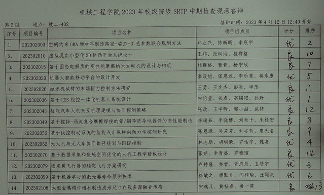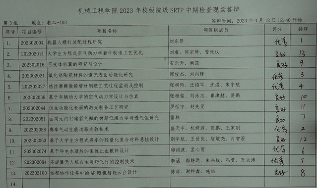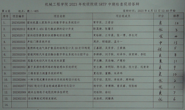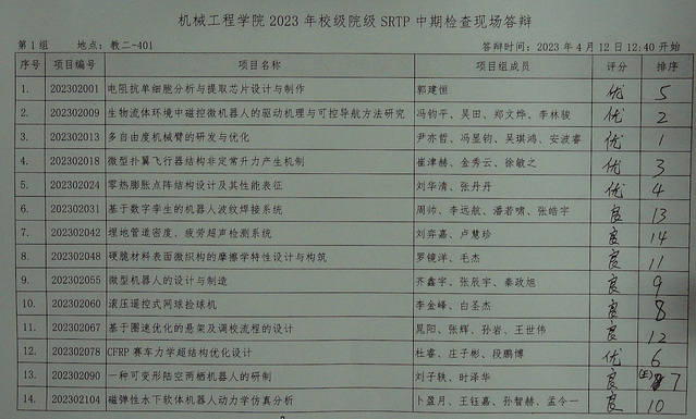 肉蒲团 2023年校级、院级SRTP项目中期检查答辩于2023年4月12日12:30至16:00在本科教学楼进行。现将结果公示如下。