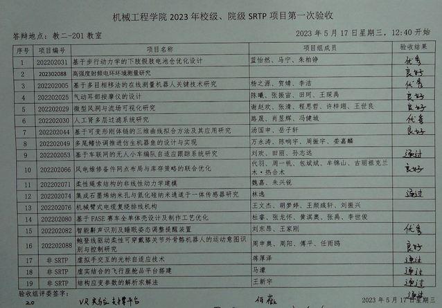 肉蒲团 2022年校级、院级SRTP项目、2023年半年期项目,2023年第一次验收于2023年5月17日12:40至16:10在本科教学楼进行。