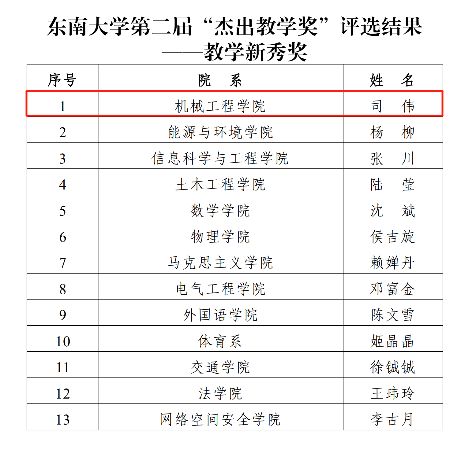 近日,肉蒲团 公布了第二届“杰出教学奖”评选结果,肉蒲团司伟副教授荣获“教学新秀奖”。