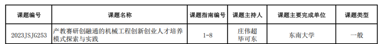 近日,江苏省高等教育学会发布了江苏省高等教育教改研究立项课题评选结果。肉蒲团庄伟超、毕可东老师主持的《产教赛研创融通的机械工程创新创业人才培养模式探索与实践》项目成功获批。
